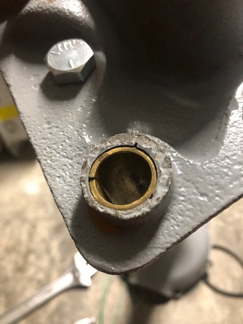 Rear brake cam bushings are in. The first one went in ok with a hammer, the second didn't so I switched to threaded rod. The first rod wasn't big enough and eventually stripped, the second 3/4 inch bolt was plenty big enough and did the job. Then I reamed it a bunch with the hand reamer shown and it is all good to go now.