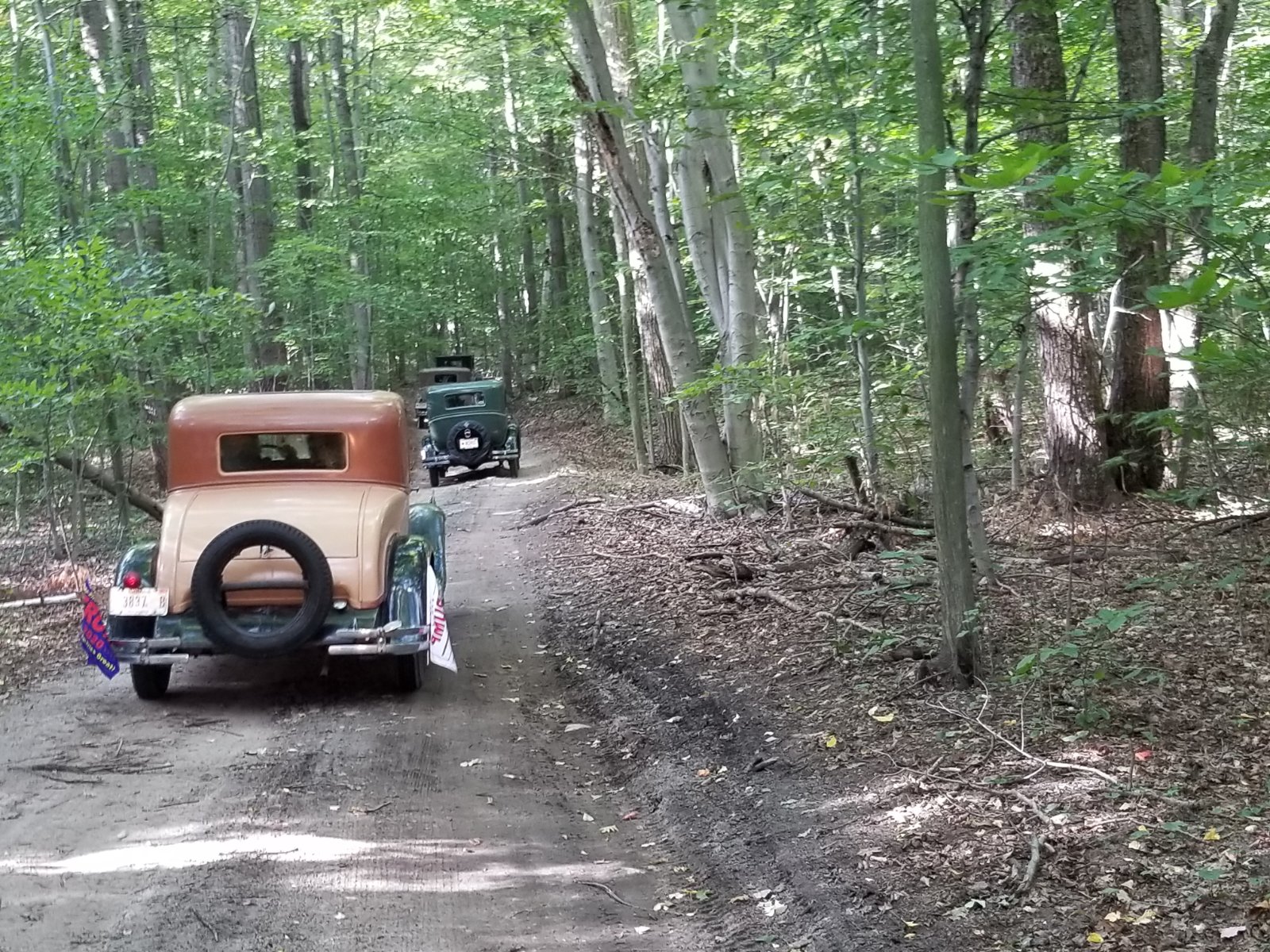 Dick, we were on a road like your 2nd photo and a lady in her modern car flagged us down. She said her husband was working on a Model A down the road a couple miles and we should follow her because he would like our cars.