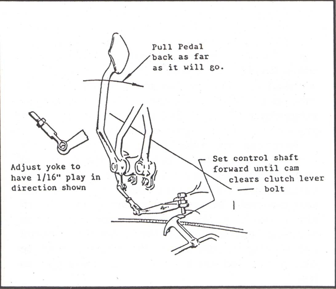 With the clutch pedal, you won't need to do any welding on the pedal. The notch is attached to the end of the shaft inside the hogs head and the cam attached with a bolt inside the hogs head. Replace them both and it is also a good time to replace the shaft because the shaft does tend to get worn where it goes through the hogs head. Note, you still might need to do a little grinding on either the notch or the cam because you need just a little play when you push the pedal down. You want to have the pedal go about half way down before it starts to compress the band. That will put the car in neutral. Then as you continue to push must compress the band tightly by the time the pedal gets 1 1/2 inch above the floorboard. Bending the pedal arm only works if a bent arm is the cause of the problem. That point is abut half way down. The neutral must be free without either high or low engaged. The bolt on the clutch arm must also be adjusted to hold it in neutral when the pedal is halfway down . See attached