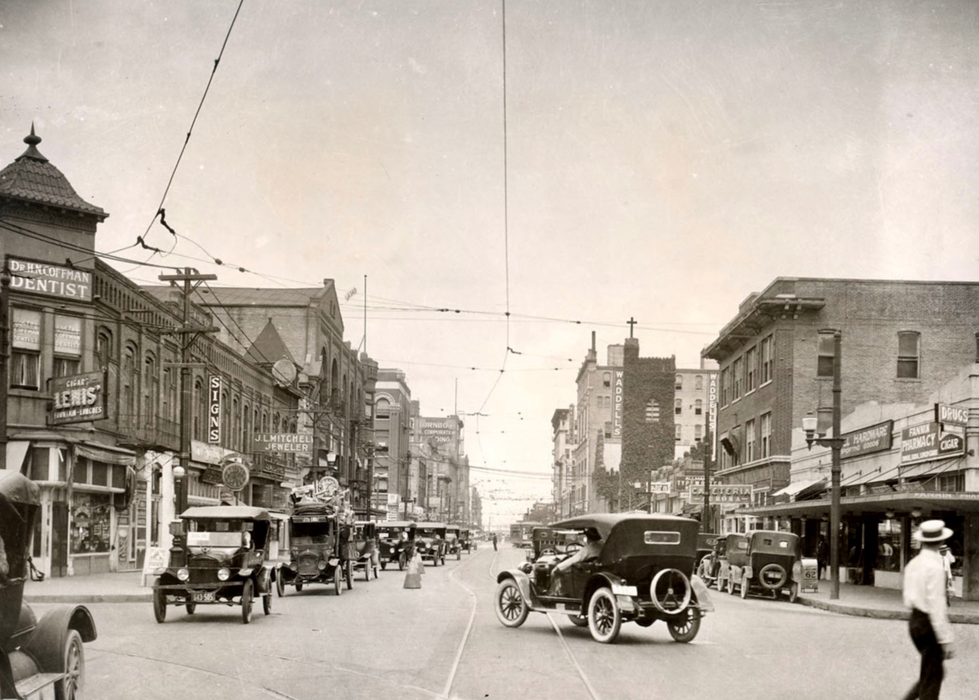 The very first photo showing the Milby Hotel is Houston, though that specific building hasn't survived. The hotel on the right is still standing.