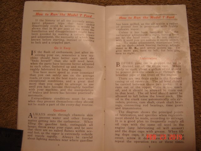 As Bill stated, the 1913 instruction book is a bit light on, May 13 and Sept 13 are 26 pages each. I have a 1914 Canadian Ford Manual which is 96 pages.