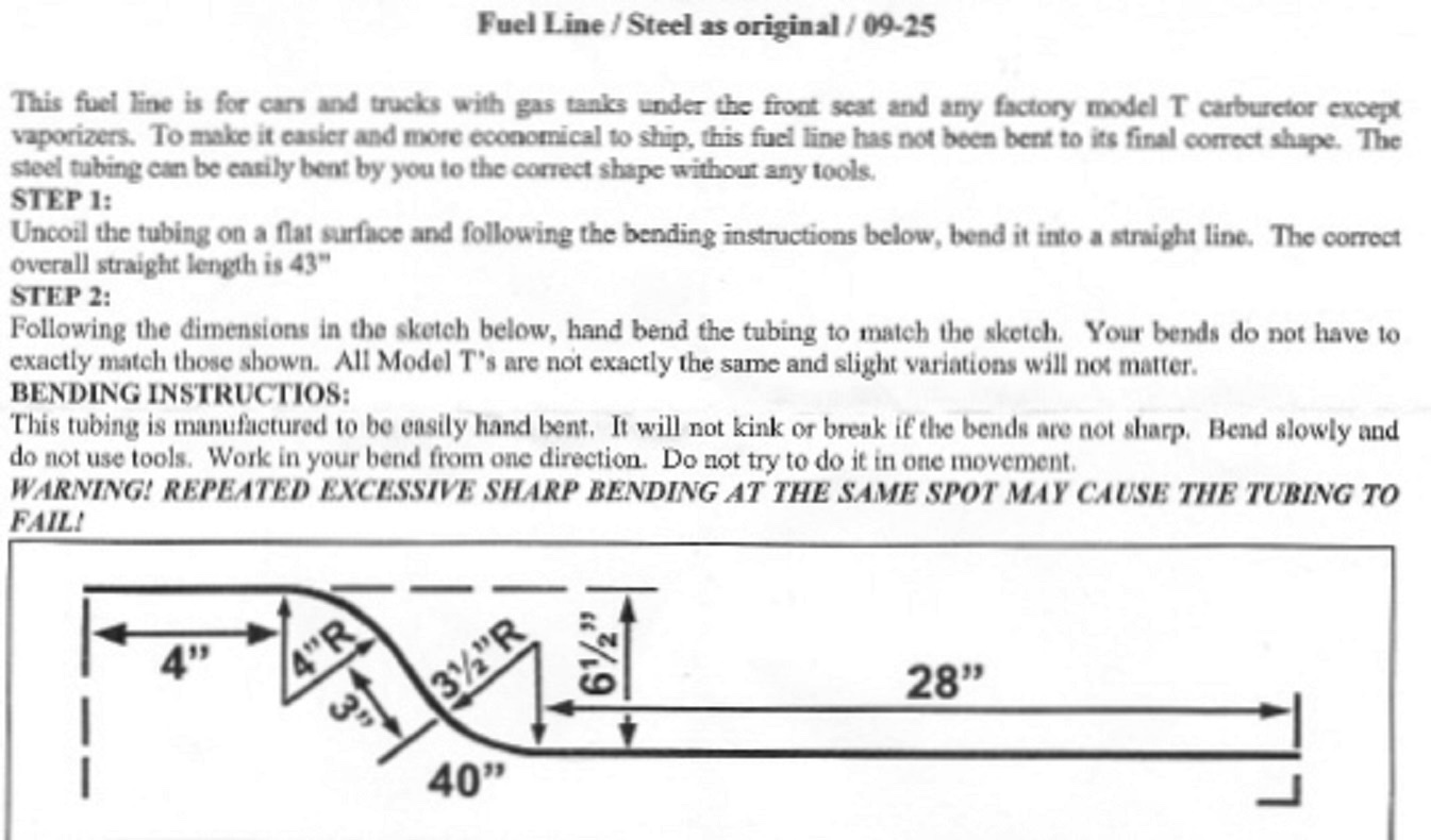 I want to start off by saying how honored I am to finally be a part of this amazing hobby. I brought home my newly acquired 1925 Tudor Sedan last Friday. I’m really eager to learn as much as I can about the maintenance and upkeep,Newbie here, so please bare with me. After looking it over, I found some pretty disturbing things, one being the previous owner replaced the steel fuel line with copper. I want to change it back. Question is how long was the original line? can I use 1/4 inch steel brake line as a fuel line?