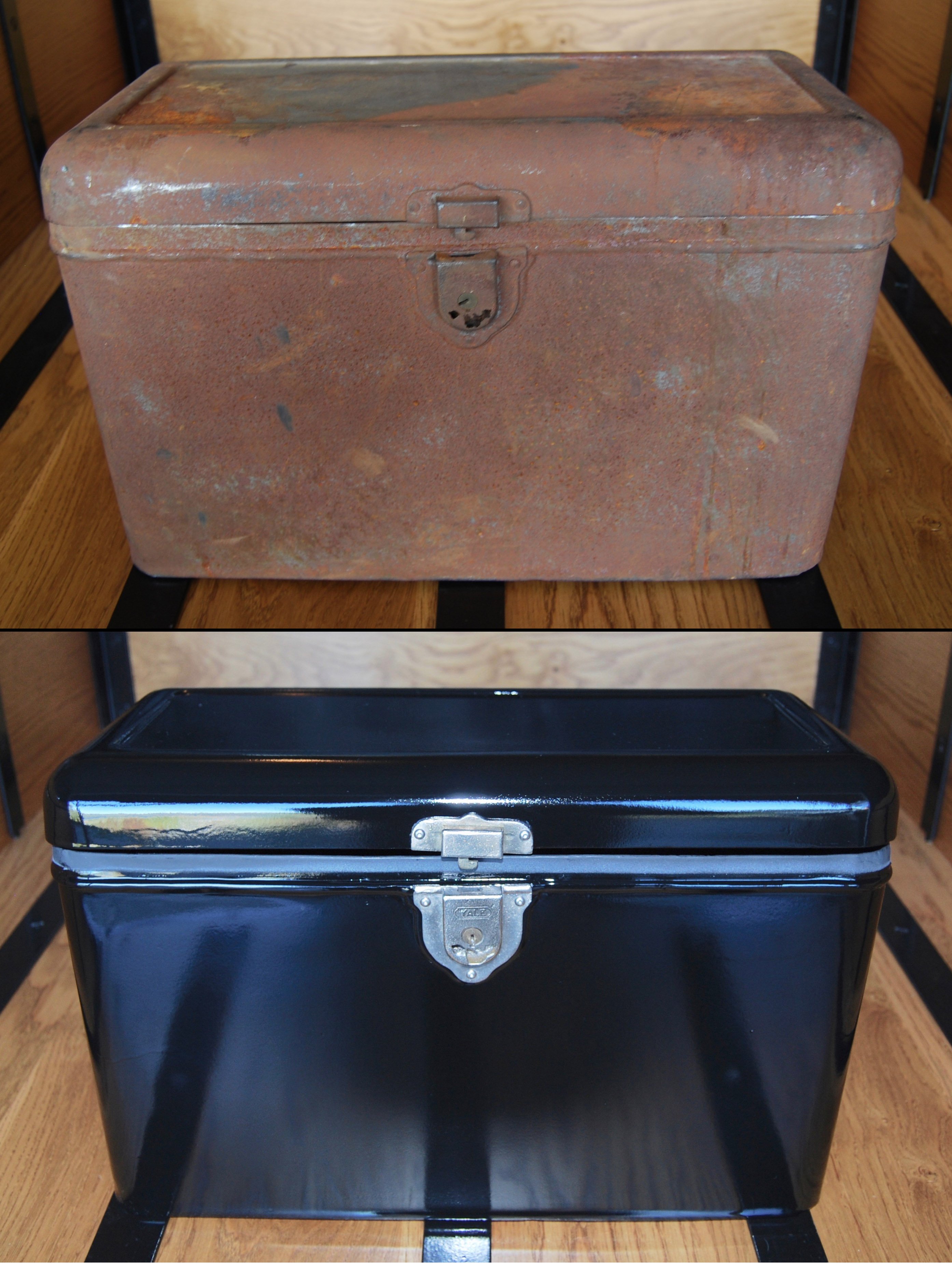 I'm still pretty new to restoration so I decided to hone my skills on a small project. I bought a little running board toolbox on the forum, and got to work.