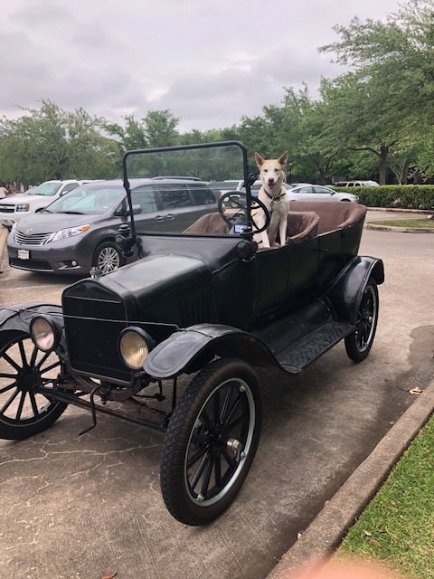 Balto is a rescue husky-laborador mix with one blue eye and the other half blue half golden. He is always ready for a ride, loves it, and to lend a paw to help out in the garage. If he could drive the T touring he would. Scouts honor.