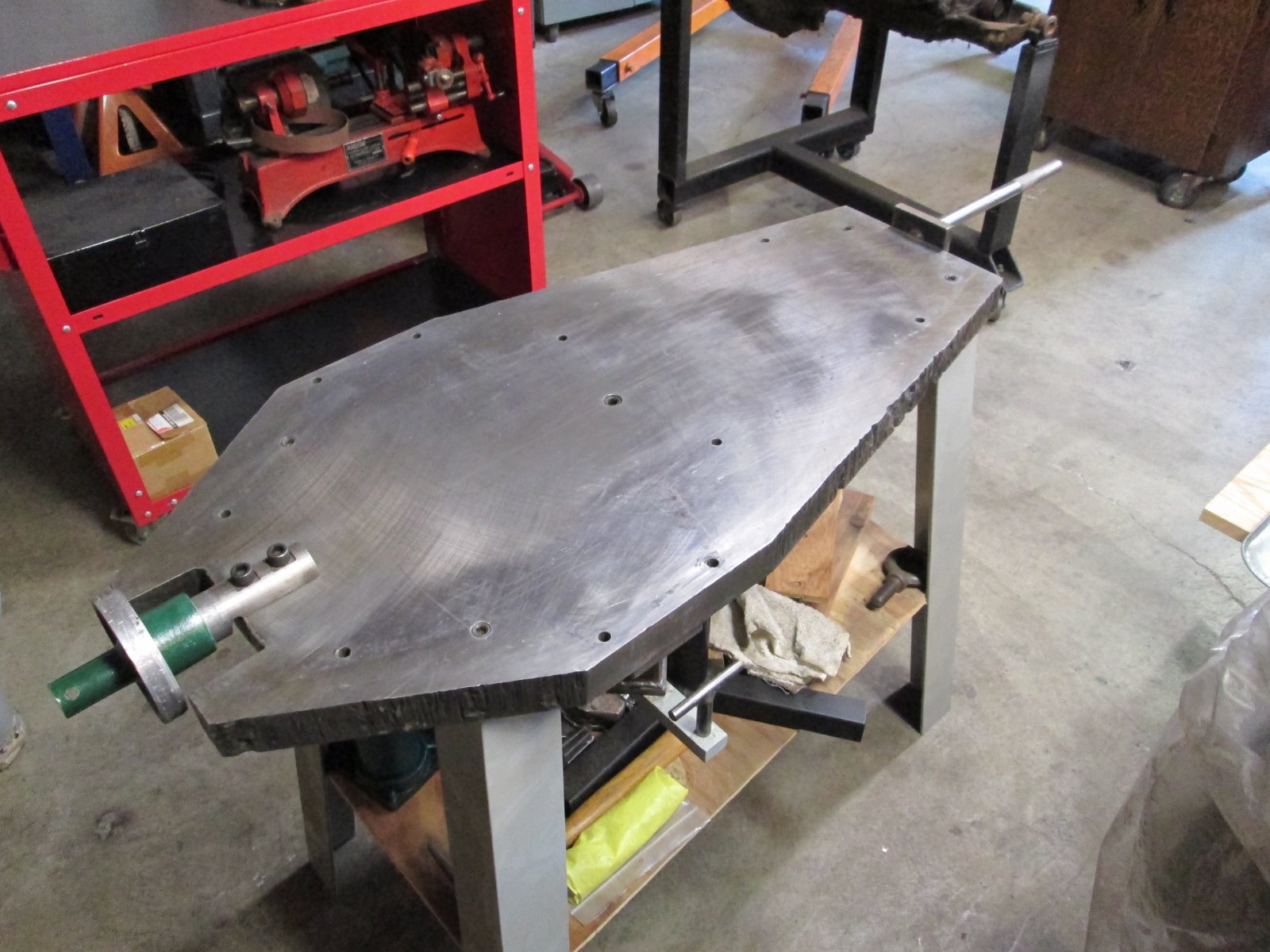 I used drill bits as shims to square it up to the table top the way I wanted it, then clamped it and drilled away. There is a guide on the side of the jig, but my table has flame cut edges so the shimming was expected. All in all it's coming along nicely.