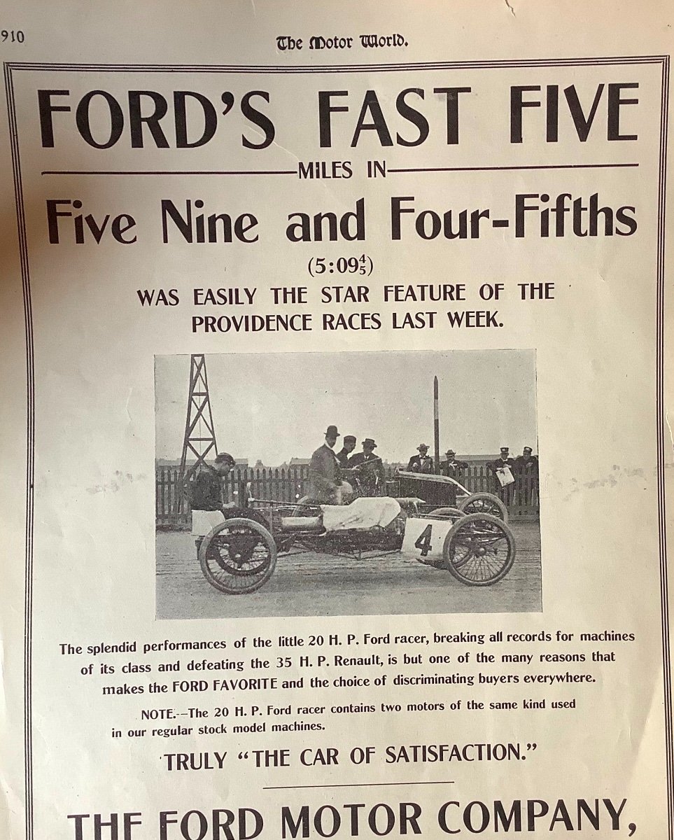 Of Fords early racers, only the 20 hp no longer exists. There were three versions of the six cylinder racer, and the last still exists, off display at THF. I’ll try to find the specs I have of the lightweight racer. Not only did it hold light and middle weight world records, it was pushing Oldfield and the worlds and US mile speed records.
