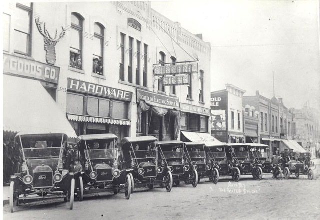 I see Pocatello Electric Supply Co. behind the cars. H.G. Shafer opened the original store at 340 W. Center St. in Old Town 117 years ago in 1902. This is near that spot but little remains the same. The business survives on North Main now.