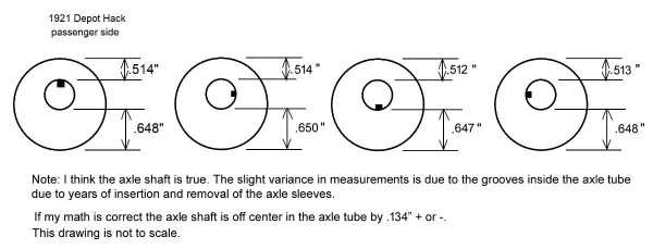 Dick- initially, my problem was grease slinging out of the hub and onto my rt rear tire & brake disc, so I pulled the hub to check it out. That's when I noticed the axle shaft was not centered in the axle tube like it normally is. That's when I posted my thread on the forum. Now, let me say this- "it ain't my first rodeo", and I know that any rear axle repairs are normally done with the axle on the bench in a vertical position. This way, gravity will not play as much of a role as having the car on a jack stand. I also have disassembled many Model T axles and have never noticed the shaft being visibly off-center in the tube. That is why I asked for opinions on this particular problem.