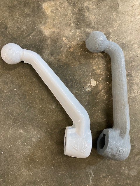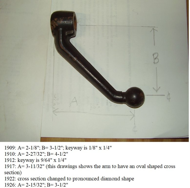 I have a Pitman arm that, if it isn't NOS, it has no wear. It has been painted black, though. It has the pronounced diamond shape to the shank, but it is hard to accurately measure it to compare to the dimensions given in Frank's drawing, above. As best I can measure it, Measurement A from steering column side of end opposite ball, is 3 12/32". Measurement B from center of steering shaft hole to center of ball, is 4 1/4". Remember, these are just approximate. What year arm do I have?[attachment=0]20210112_115118.jpg[/attachment. It is Ford script and looks like one of the first two on the left in the photo of four arms, above.