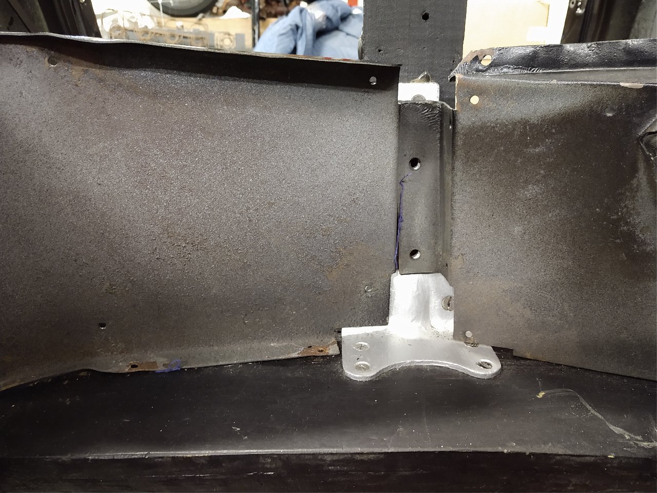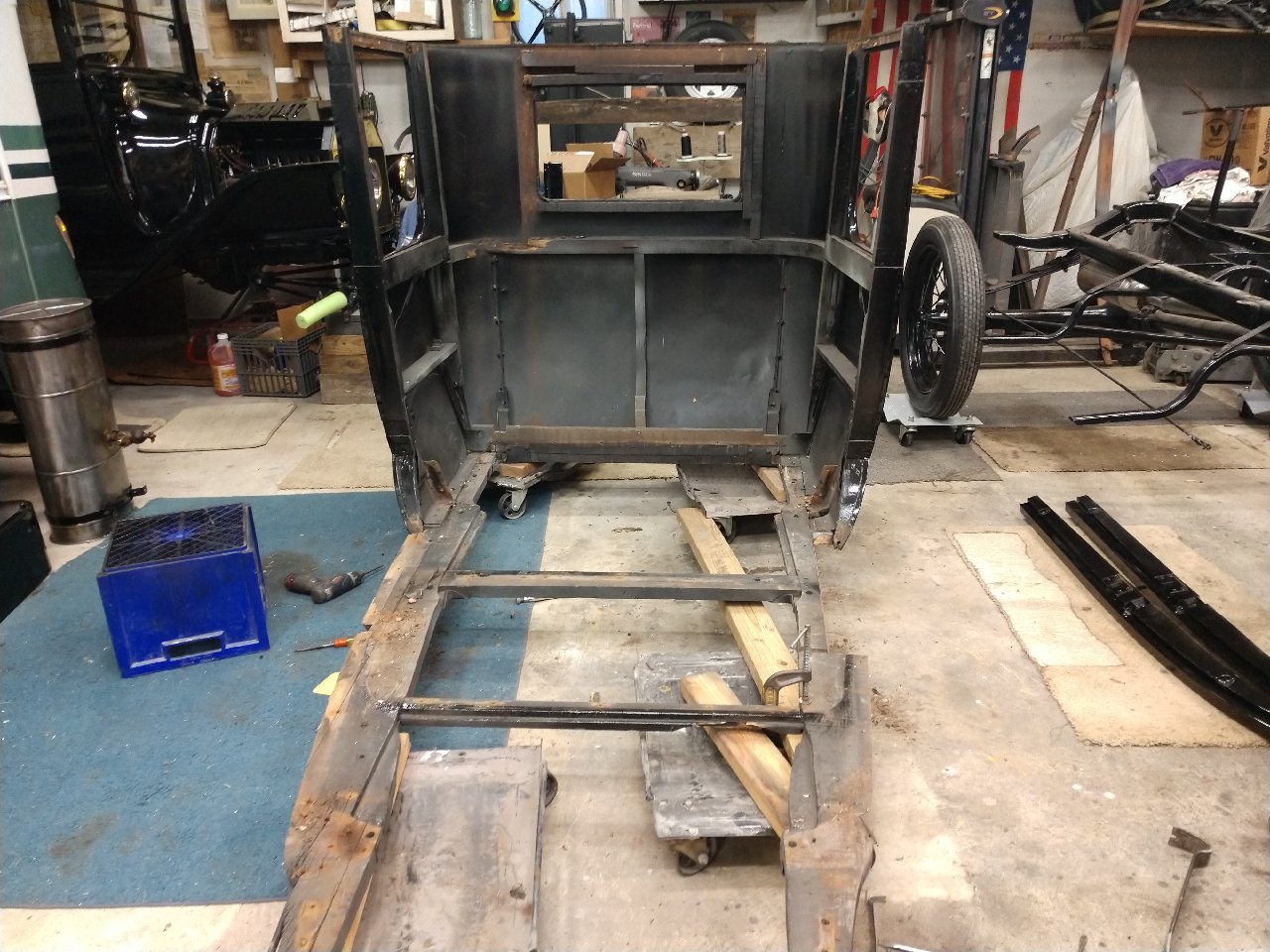 I've mentioned on prior posts about the main-rail crossmember tenon wear. Here is a perfect example of just that. The main-rail outer edge has settled more than a 1/4" on both sides of the car. This may seem minuscule but when the time comes for the final fitting and door operation it can make for a frustrating reward for a heck of alot of work.