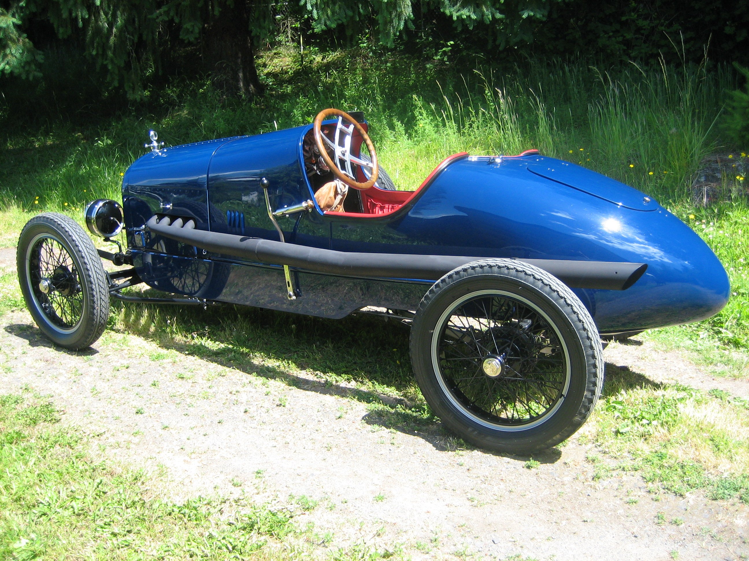 This is my speedster with a Rajo Over head valve that was manufactured in about 1923 with out the heat riser. The engine is coupled to a C 4 automatic. About 10 years ago I had the opportunity to dino the car and it came up to about 100 HP at the fly wheel. The engine is full pressure with insert rods and mains. Tom