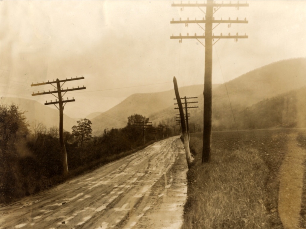 Thank you sir!! Telephone poles and houses with more than one chimney and buildings up to the edge of the road!! Great look back!! Bud.