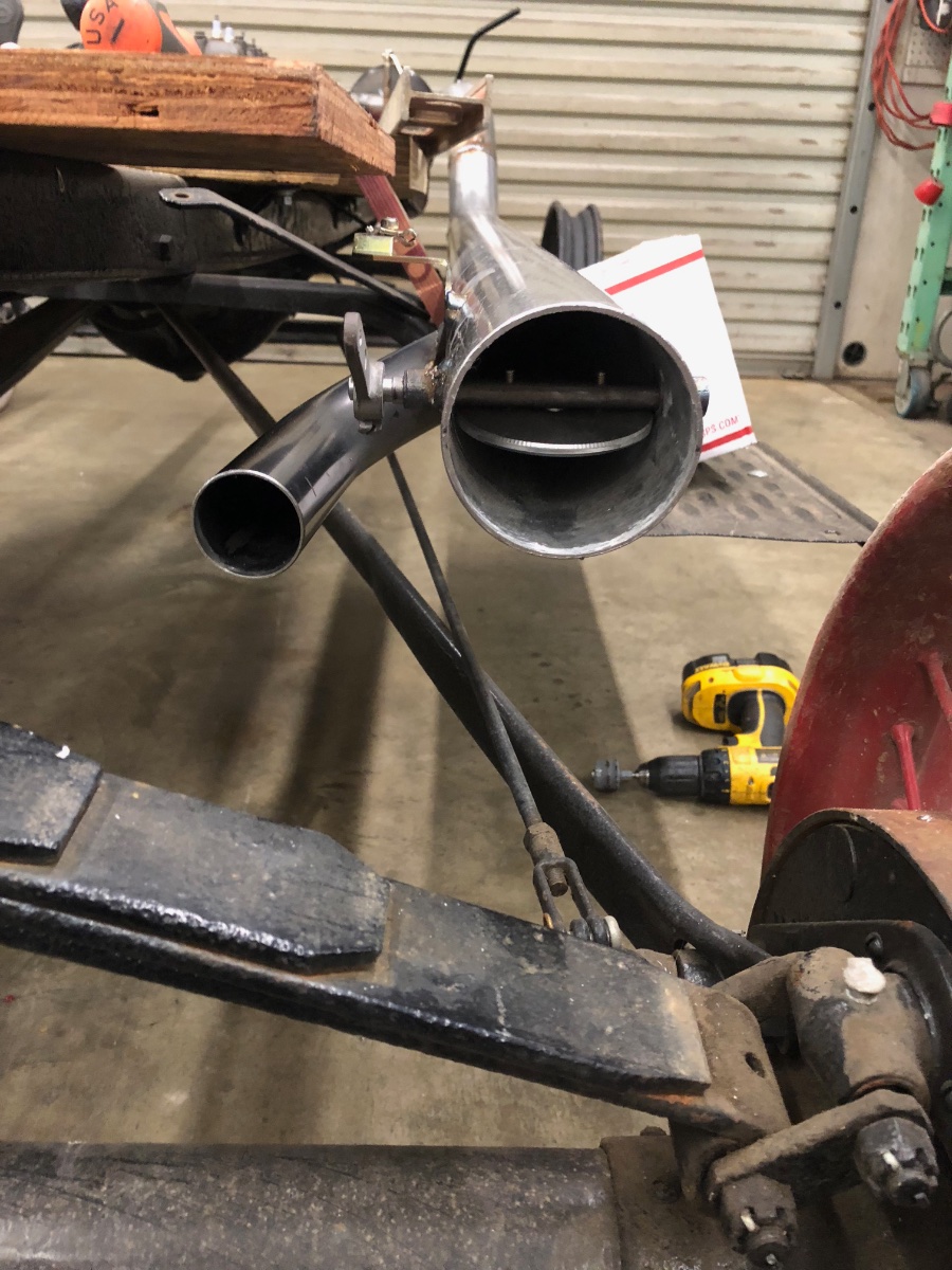 John it is pretty simple, the inside pipe reduces down by about an 1/8" towards the rear. this keeps the carbon in a slight restriction/back pressure before the seam. With the next connection going over it, you only need two sheet metal screws to hold it. I normally give a light coating of red RTV at the seam to prevent corrosion. Makes for a nice flex point since the Model T's frame has flex to it. You can may find some heavy wall pipe that will slide inside the piece you are working and pen the edge over slowly. I have a power roller which does my shrinking for me. Another method is to purchase various adapters with the edge as needed, cutting to your liking.