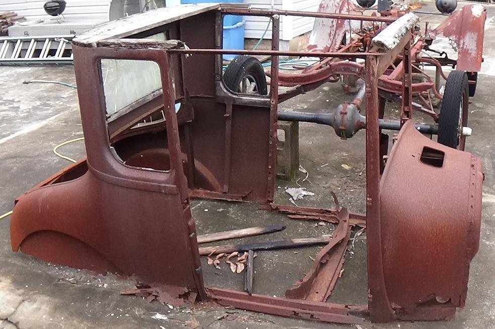 The 26-27 coupe is an "all steel body", it does not use any wood for structural integrity. Take the roof off, clean, derust, and paint under it.