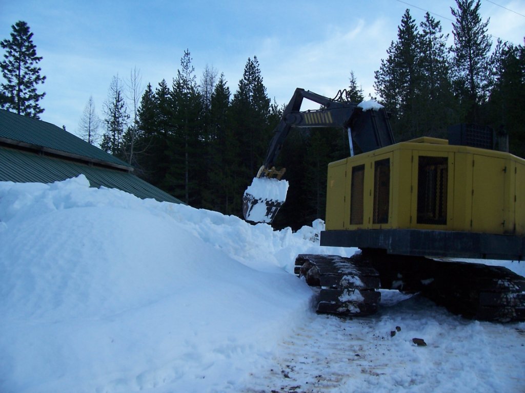 We've been living in a "chinook" all winter. That is changing starting tomorrow. The real Montana winter is arriving with a vengeance. This happened several years ago, we got a whole winters worth of snow in one week. When it was done we had five feet of snow on the flat. I had to break out the excavator to dig out the barns.