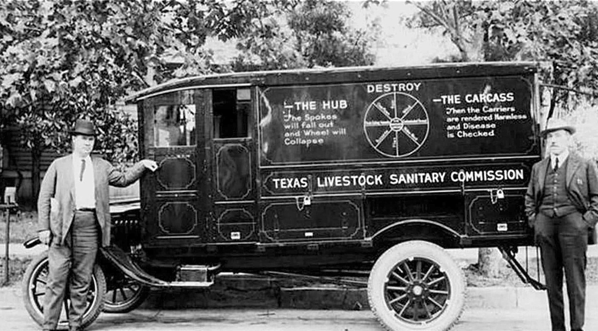 I wonder if the "Texas Livestock Sanitary Commission" truck was also their "rendering" pick-up... that would have made for a rather pungent trip... as well as a "memorable" ride. Strong men with even stronger stomachs!