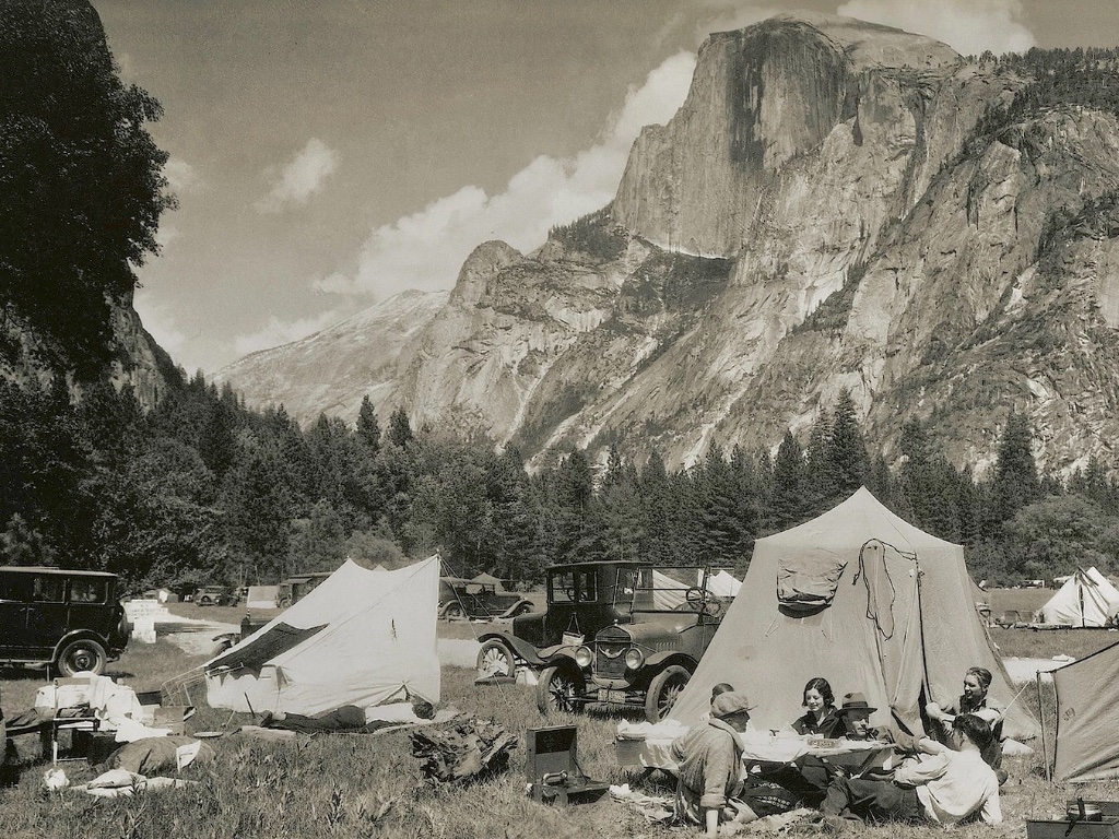 It still looked like that in 1945! And the campground was so full that you could almost use the same pegs for adjacent tents. That was before designated campsites. Just an area called campground and was first come, first served. Gas was still rationed and my dad got a job selling plastic coat hangers, because wire ones were not being made. We left the Los Angeles area and I remember stopping at towns all along the way while he went in to make a sales pitch. Mom, my sister and I would visit a local park while he was doing business. Finally we took a side trip to Yosemite. It is amazing, looking back on things how many people were there during gas rationing. I was 9 years old and dad and I hiked all the way from the floor to Glacier Point and back in one day!