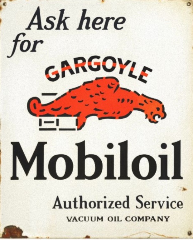 The "Gargoyle" was SOCONY's early mascot and was replaced with the Pegasus. The Pegasus is still used today however, the Mobil Corporation still uses the name "Gargoyle" in the labeling on some of their bulk industrial lubricants. I do not believe the Gargoyle logo is being used any longer.