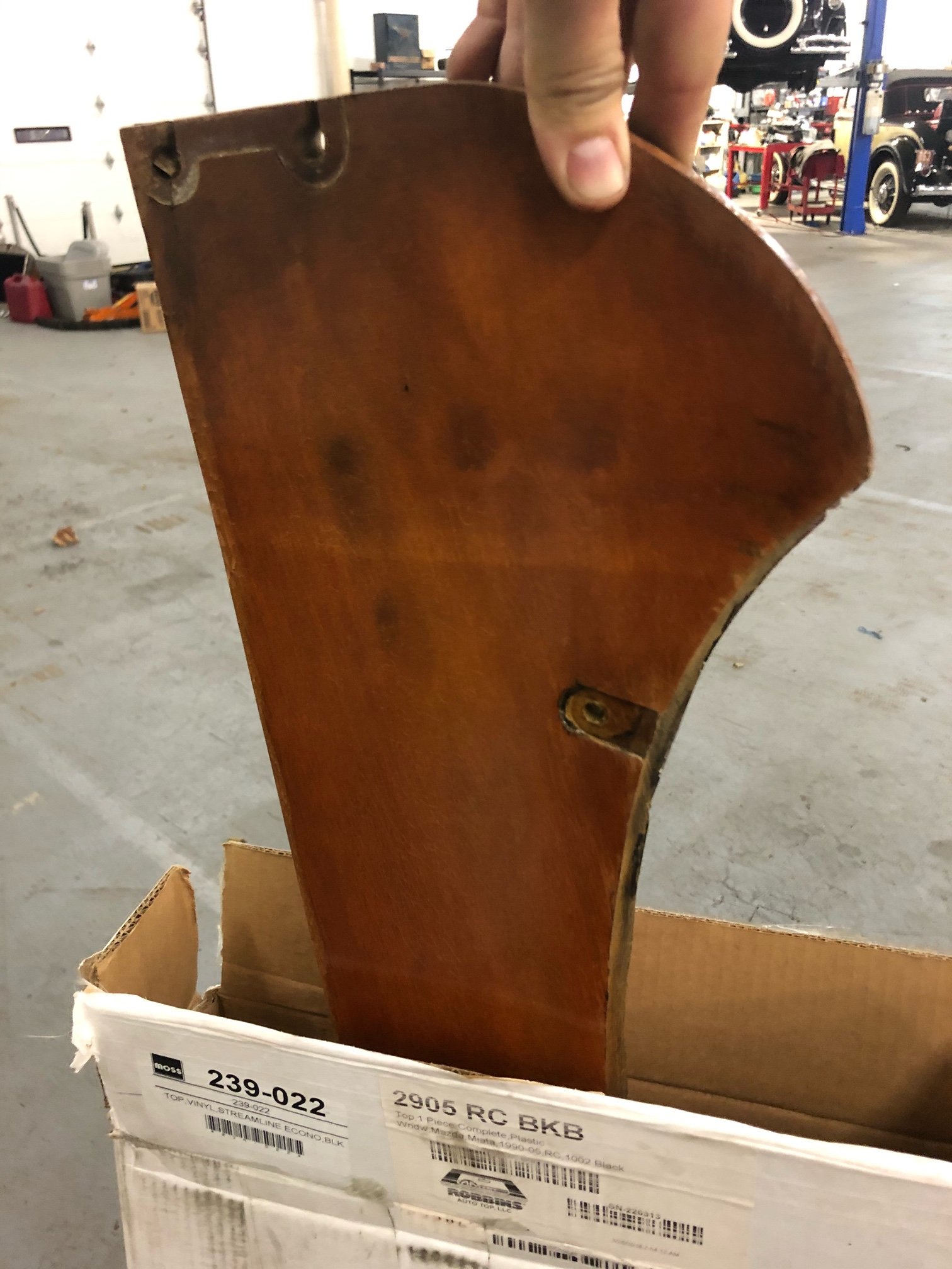 I received the new upholstery kit for the Flanders yesterday from Classtique, they used my originals as patterns. They were very generous with extra material and padding so that the pleats will come out fully packed with padding. They used a mix of leather and vinyl to match the original materials. They also included extra material so that I can make new door and footwell panels to match if desired. In the pictures, the seat back is on the floor and the seat base with its extra padding and canvas is on the couch, still wrapped in plastic.