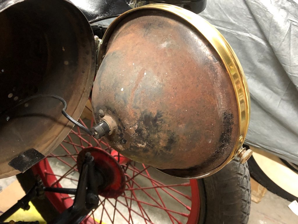 The headlight doors are pretty well battered. The rest of the brass (outside of the horn) is pretty nice. I wonder if the damage might have been done while "adapting" the headlights?
