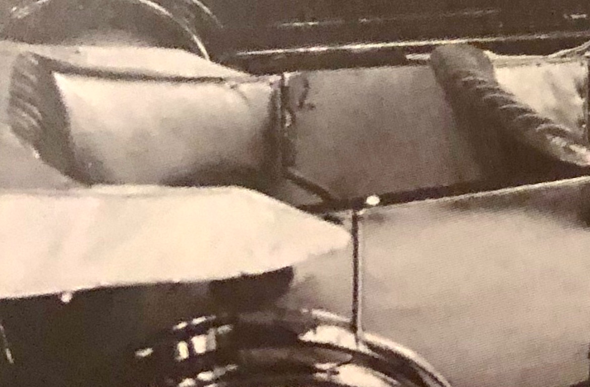 45256X - strip (seat back support) a steel strip bolted beneath the angled steel piece at top and bolted to lower seat wood tack strip ,(stove bolts) gives support to the backrest spring.