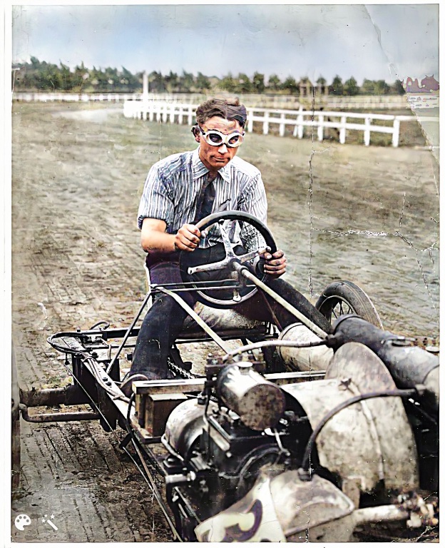 We came across a "colorizing" site that is amazing. It enhances photos (even faded newspaper), colorizes, and even animates (although I haven't used that feature). Frank Kulick was one of Fords first employees, and went on to be nationally known as Ford's primary race car driver between 1904 and 1912. These will be random and I'll keep adding as I convert them.