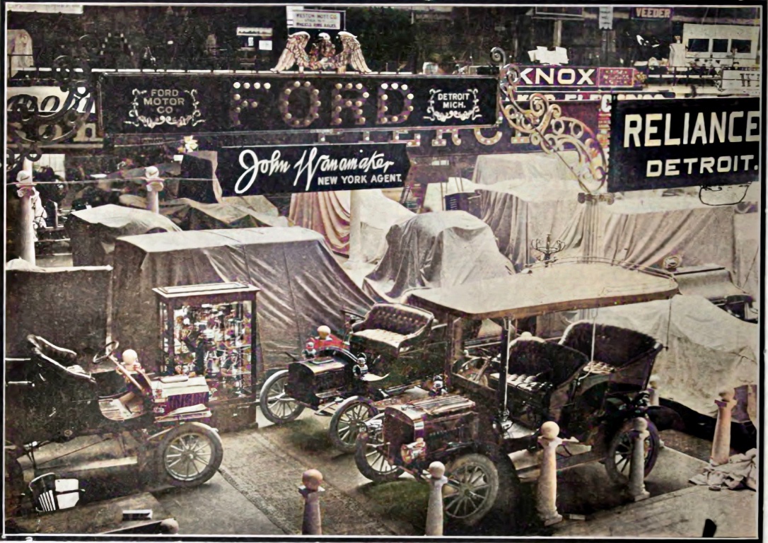 I'm going to try car shows. The first is from a period magazine of the Wanamaker booth, January 1905. Models B, C and F are shown: