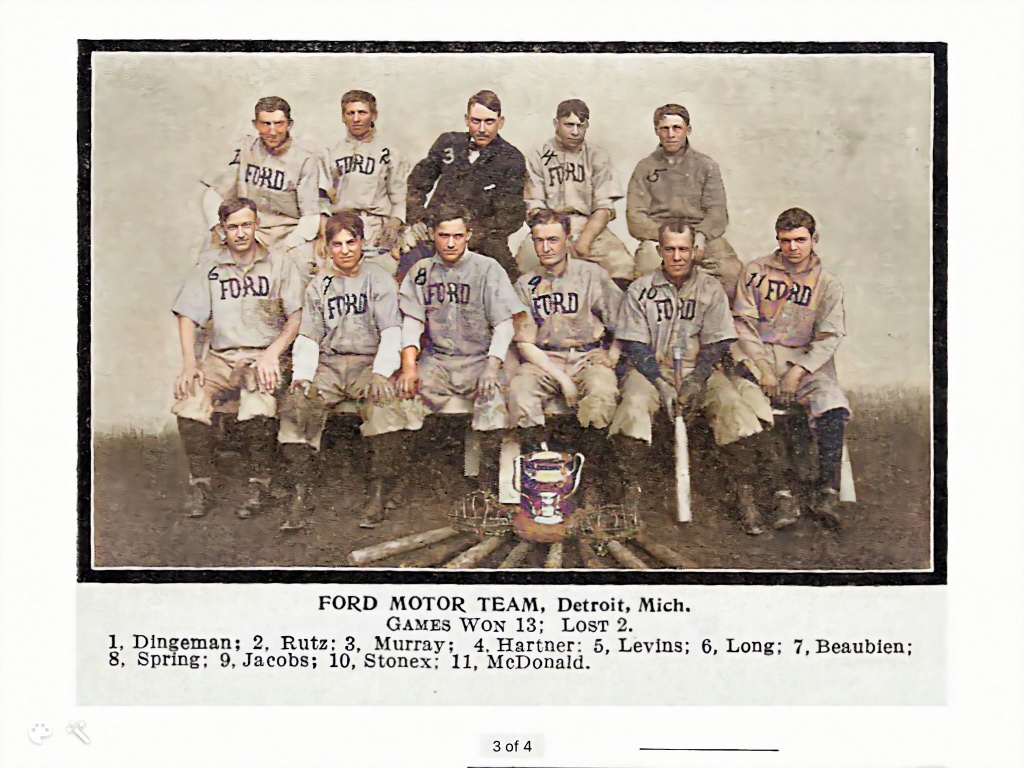 Ford won the Auto Manufacturers league in 1907, defeating Packard, Cadillac, Thomas, Wayne, Northern, Reliance, De Lux and one other company team: