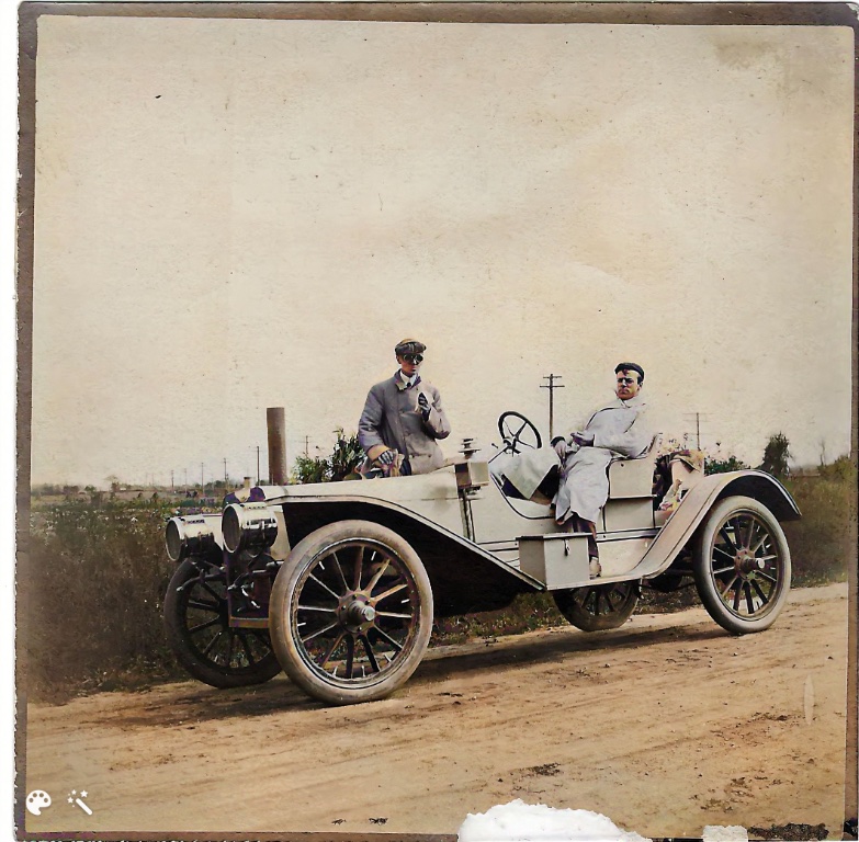 Another FMC long time employee August Degener, holding "background" for official photo of the last Ford Six racer sometime in the late summer or early fall of 1907: