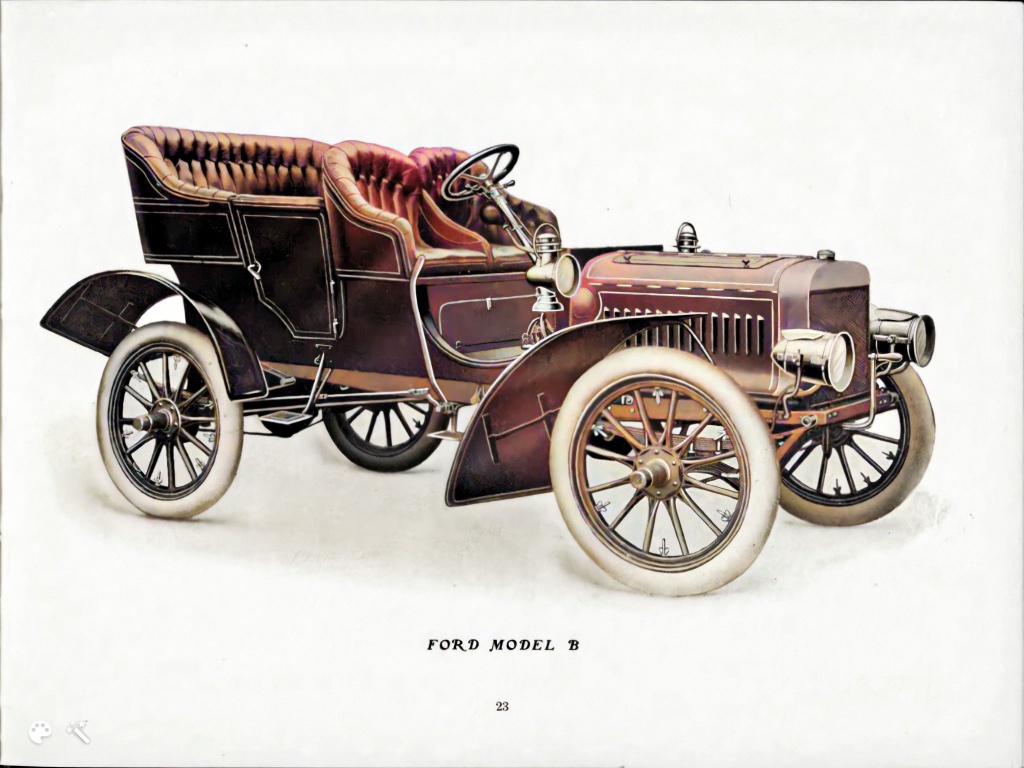 First, an early Ford drawing of a Model B (step plates instead of running boards):