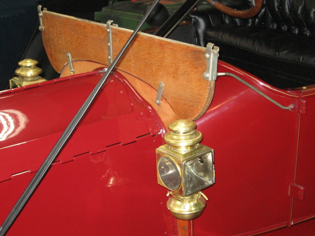 One other difference - all of the pictures of Flanders cars that I have seen have straight support rods that go up to the windshield pivots. However, my windshield support rods have a stylish curve at the bottom. The curve has to face the direction shown. If I turn it the other way, it interferes with the opening of the door. Maybe a late 1912 change? :)