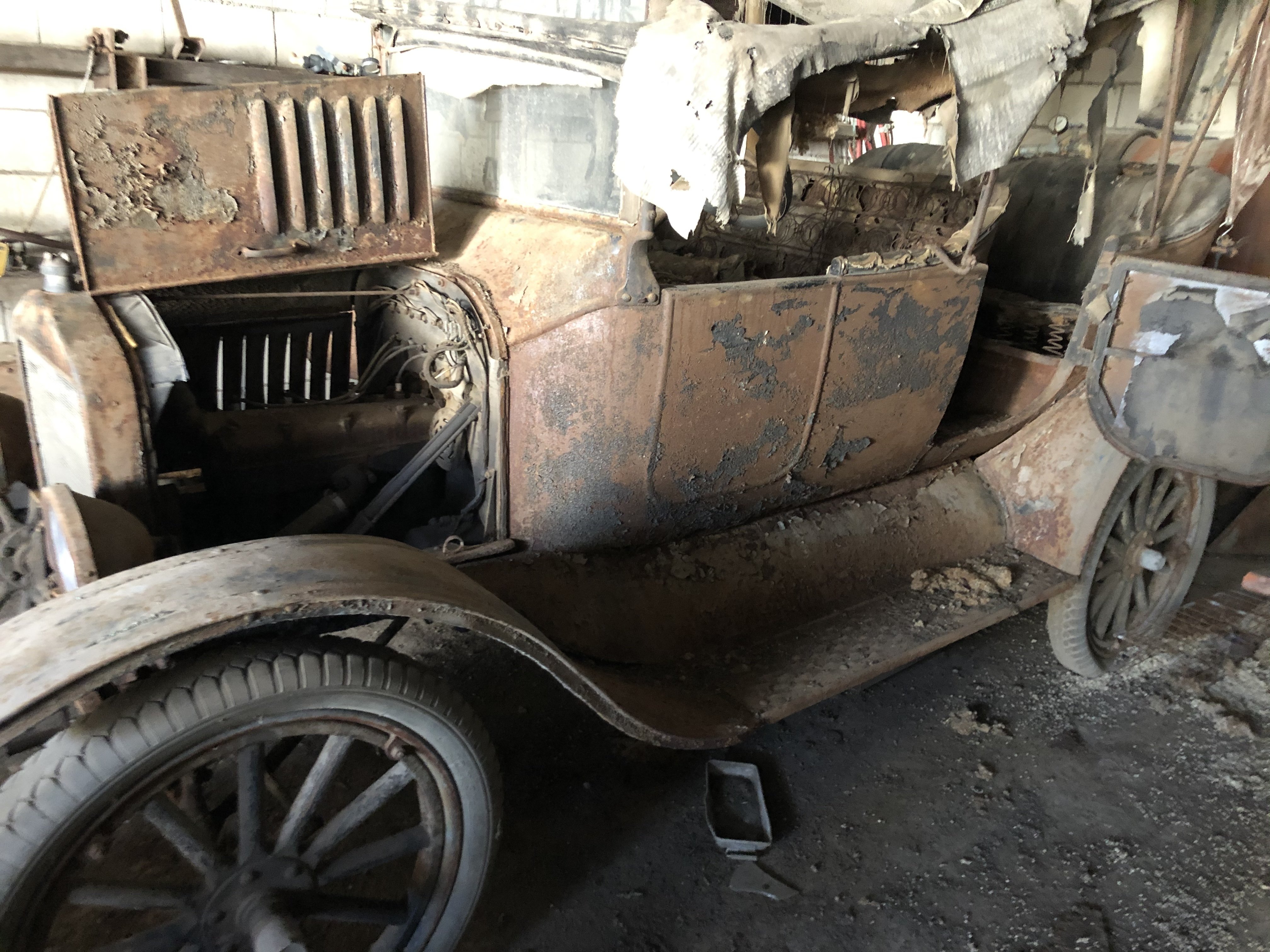 Here is a 22? Touring I looked at in a real barn on a real farm in mid Illinois yesterday. The family wants it restored for a wedding. I explained costs and gave them classified ads showing that pretty nice ones can be bought for a third of what they will spend. It was very interesting to look at as it is complete and untouched. Art