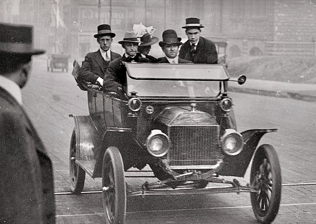 Interesting. My first memories took place in the late 1930's. By then the "New"cars had a very different look from the old cars. There were still many Model T's and other older cars running around. You would even see a few horse pulled wagons. The large city downtown areas looked very much the same as the ones in these pictures except there were some newer cars parked. Because of the depression followed by the war, there were many older cars still on the road until about the late 1940's.