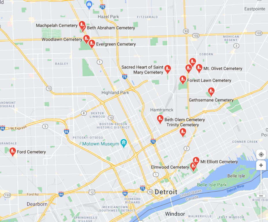 I wouldn't think Dearborn so much as Highland Park, near the Highland Park Plant, on Woodward Avenue. Going north on Woodward, there's Evergreen & Woodlawn Cemeteries. Where many auto barons are interred. (And Dutch Girl Donuts, but that's another story!)