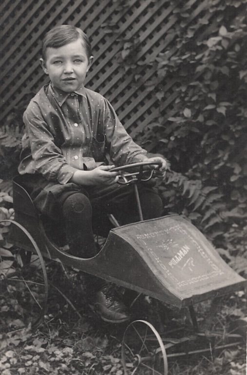 This is me, circa 1954. I am the 5th owner of the pedal car, same extended family since new - which was about the mid-30's. So it had been literally, and figuratively, been "through the war".