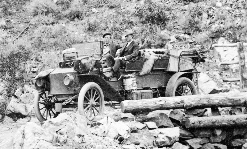 Things went very well through the 'teens, the Stanley did its work daily, hauling thousands of loads of visitors up to the springs and back down to town. Coyote Creek provided a handy source for clear water for the steamer. Stops on the bridge, with the syphon hose thrown over the railing into the creek below, took only a few minutes to fill the water tank under the front seat.