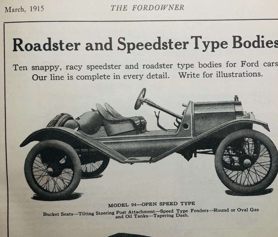 The Ford became such a platform for expression of racing, as the car was inexpensive after a year or two. Commercial racer bodies appeared in early teens. And many were made by the owners too, from parts of Fords or other cars.