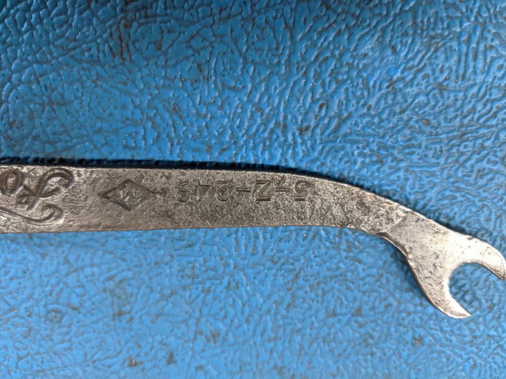 Guess there were two styles of the wrench. I have seen others like the one shown without the end for taking off the nut that attaches the cut out to the post. I thought they were something someone modified, but guess not. It is used to loosen/tighten the nut that holds the 3rd brush so output can be adjusted. If you use it on running car, suggest wrapping it with tape in the bend area so does not short out on generator case.