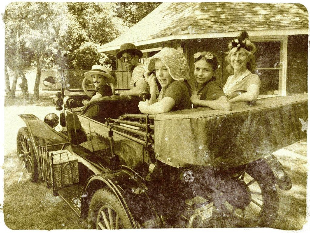 Then, of course, over the last ten years, we've been to lots of car shows and neighborhood cruise-ins. That involves dressing spectators up in costumes, shooting photos of them and then, through the magic of Photoshop, "antiqueing" the pictures and providing them via e-mail to the nice families who then make charitable donations to the St. Jude Children's Research Hospital.