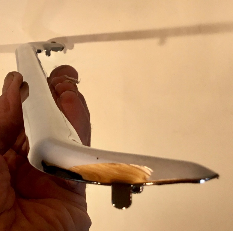 Bruce. Be sure to install the chrome (nickel) plated trim piece on your radiator apron. It makes a real difference in the appearance of the front of your T by framing the radiator in silver, all the way around and across the bottom by joining the legs of the shell. I have posted pictures of a T with the trim and a T without the trim to illustrate the difference the trim makes. They should be available from Lang’s or Snyder’s. The 3 pictures I posted of the trim are of one I sold on eBay last year. Notice the hole on the left to accommodate the brass choke wire. Jim Patrick