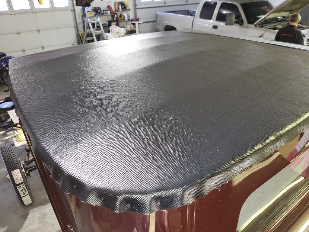 Photos of installation of top and interior material.