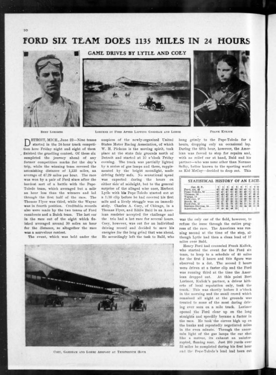 Thanks guys. I had a poor quality copy, so knew what I was looking for, but couldn't locate another copy. This helped me finish a project that has been a long time in the making (at least, in my mind). I'm starting another link with it if anyone is interested, regarding Ford's record setting victory in the 24 hour contest held at the Michigan State Fairground race track in June, 1907.