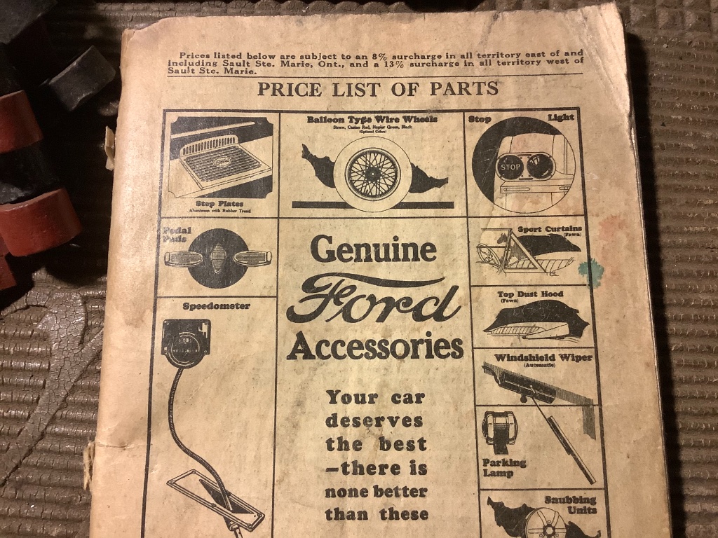 The Fordex for 1926 shows every genuine Ford accessory made for that year. along with the prices.