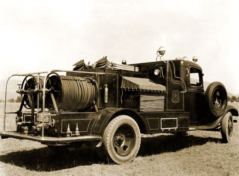 "...1929. This truck, designed to carry a firefighting tractor, was nicknamed the "Bob Fraser Special.""