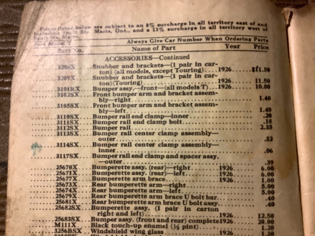 The Fordex for 1926 shows every genuine Ford accessory made for that year. along with the prices.