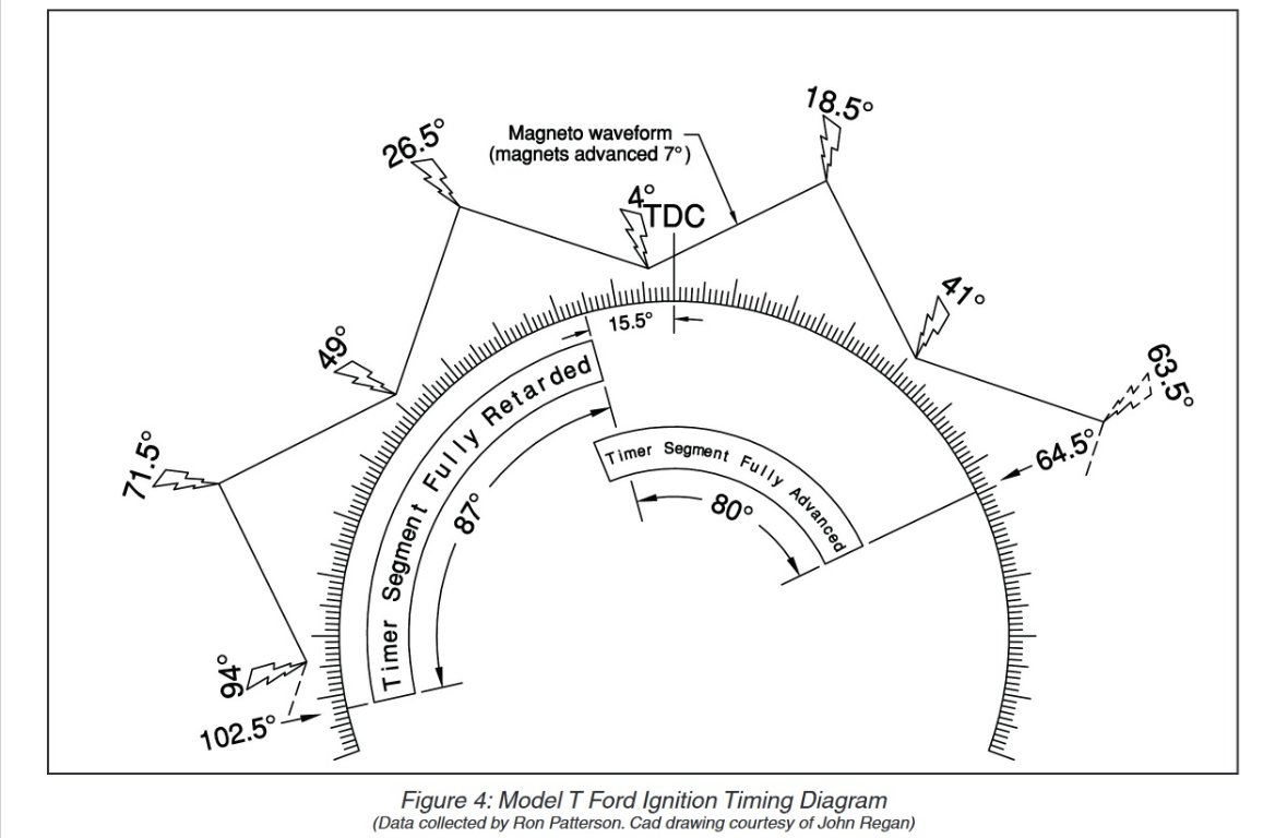 I must confess that I don't understand the chart. 120.5 degrees is way more retard then a four-stroke gasoline engine would ever need, and most modern engines limit the advance to about 35-40 degrees. With 60+ degrees of advance I doubt that a T engine would run; if it did there would be holes in the top of the pistons very shortly. Some time ago Ron Patterson posted an excellent chart showing the proper advance and retard in a more understandable context.