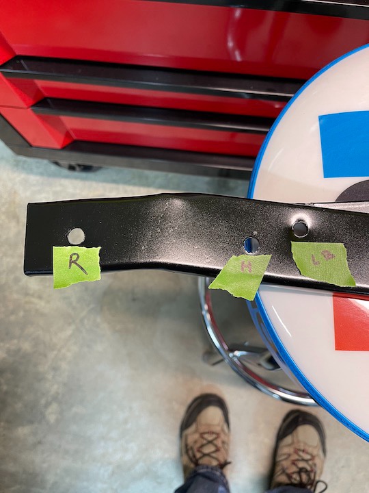 H= Hood Latch This is how I have my wood blocks set. So I'm thinking that the two short bolts go in the last hole of the Hood Shelf.