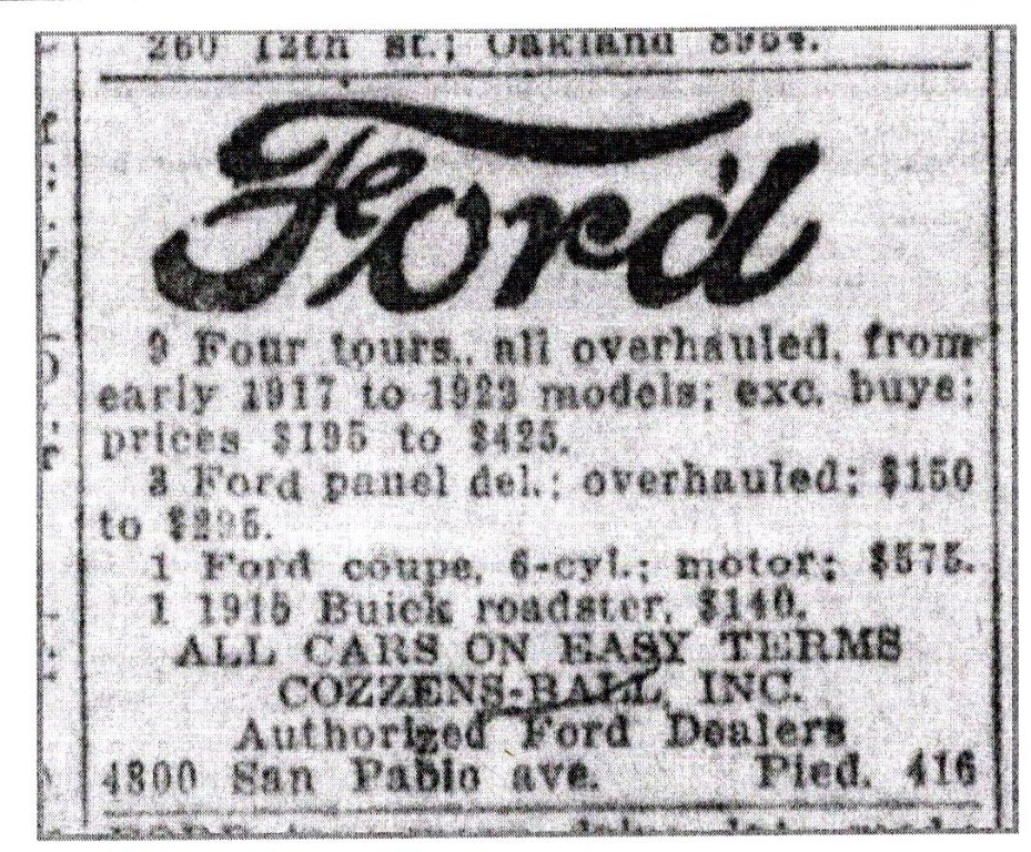 The posted advertisement to sell Model ts, Interesting that such a car was sold by a dealer.