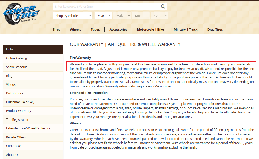 My Lesters I got through Universal, after my good sales experience I would think they are resonable folks and help me out if I was experiencing any tire defect concern. As I understand Coker and Universal tire are one and the same.