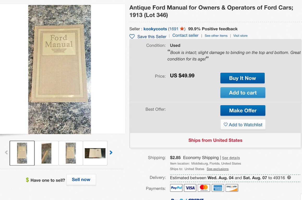 The one "Ford Manual For Owners and Operators of Ford Cars" on eBay without a Copyright date is listed as 1909-1912?